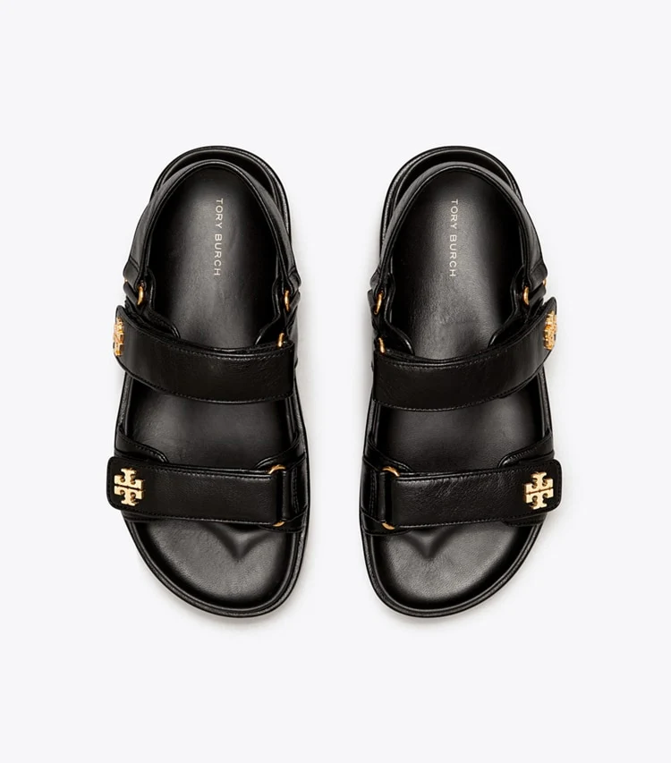 Day-to-evening wearability combines a practical silhouette with elevated details. Our TORY BURCH Sandal pairs soft leather with an ultra-comfortable molded leather footbed and rubber sole. Three utilitarian Velcro straps are detailed with our signature logo.